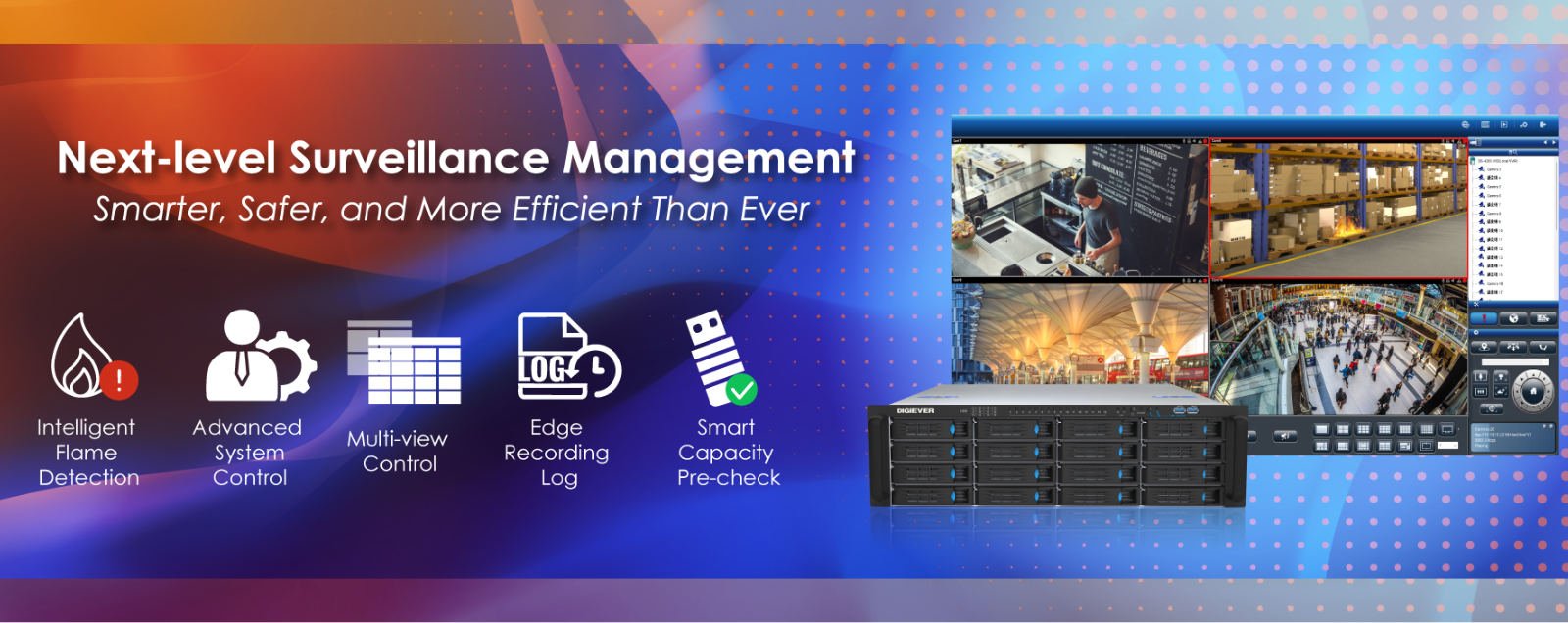 DIGIEVER Central Management System (DIGIEVER CMS) is an open platform solution to centrally manage different sites of DIGIEVER NVRs in diverse vertical markets. Composed of two intelligent video software, CMS-Client and CMS-Matrix, DIGIEVER CMS can manage large-scale surveillance efficiently and effectively.